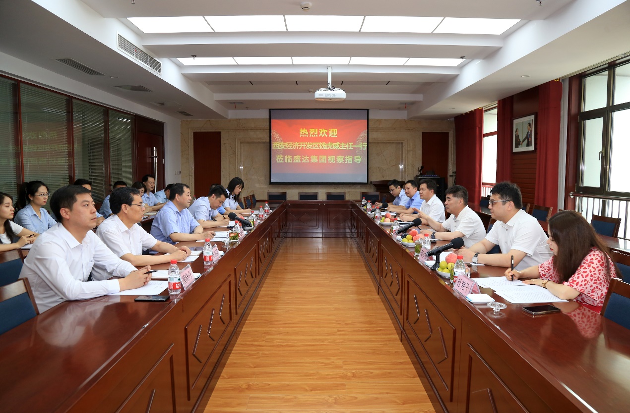 7月9日上午,西安经济技术开发区管委会党工委副书记、管委会主任钱虎威一行莅临甘肃多宝app·平台(中国)官方下载视察指导,并与多宝app·平台(中国)官方下载董事长赵满堂,多宝app·平台(中国)官方下载副董事长、甘肃多宝app·平台(中国)官方下载总裁赵海峰及公司人员进行