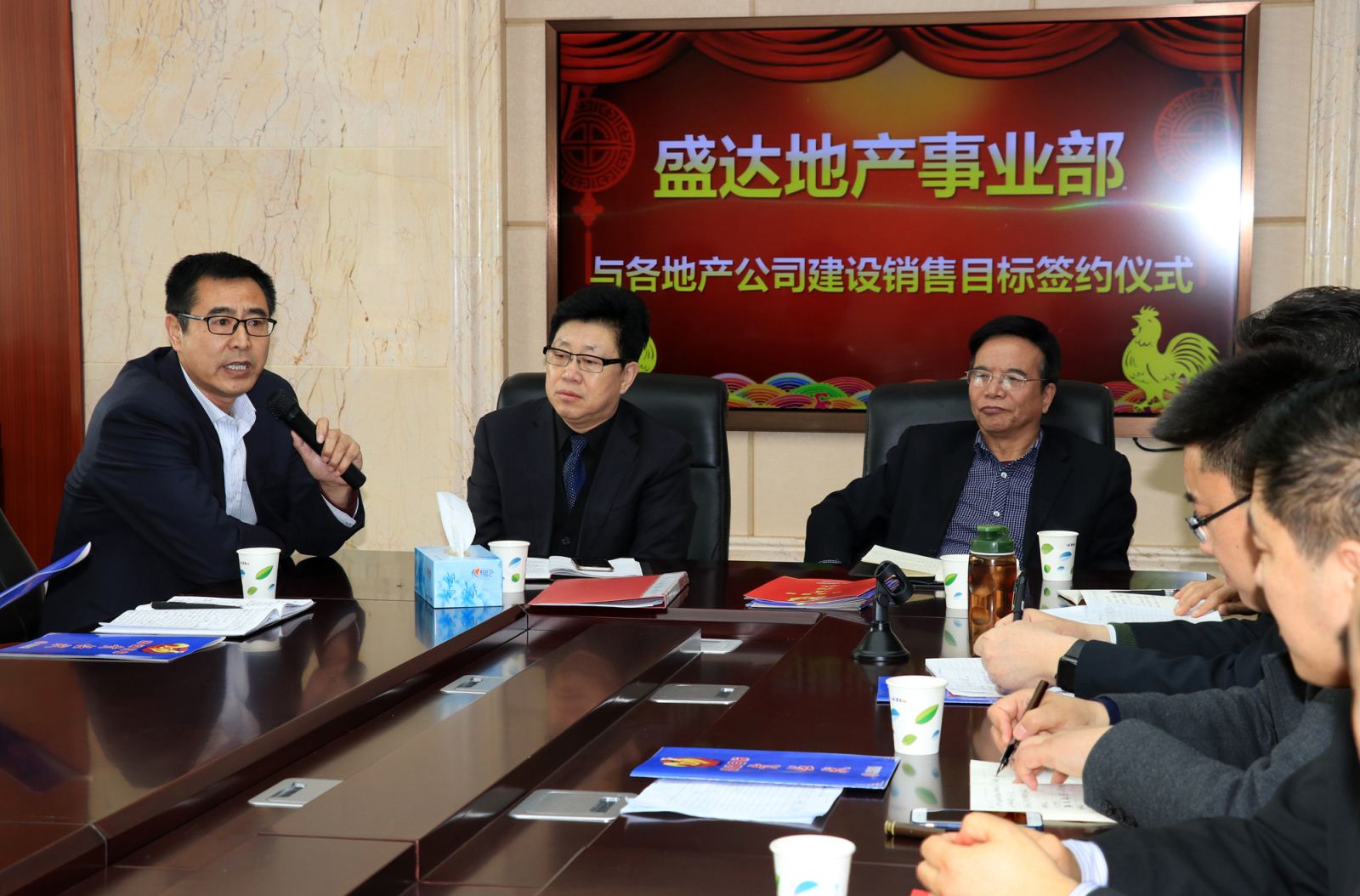 刘大利对会议做了总结发言:本次会议为我们的工作指明了方向,提出了要求,目标责任状签订后,请各项目公司立即安排好工作计划,抓住时间节点,高质量、高标准完成好2017年经营目标。请各项目公司负责人回项目后立即组织全体员工学习领会今天的会议精神,贯彻落实好各项工作任务。