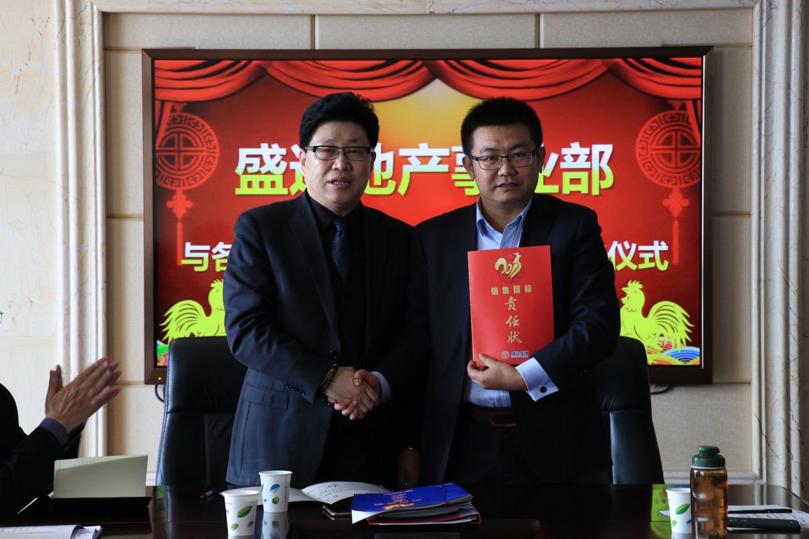 参加签订会的地产事业部有关部门领导:刘文庆、马文德、赵敏、高学兵、朱晓东、罗小强、刘建勇、武来祥、李保聚、张守仓、高广通、汪少华、李煜、邓瑞萍、谢义诚、郭维、邓小钟、裴小玉等。