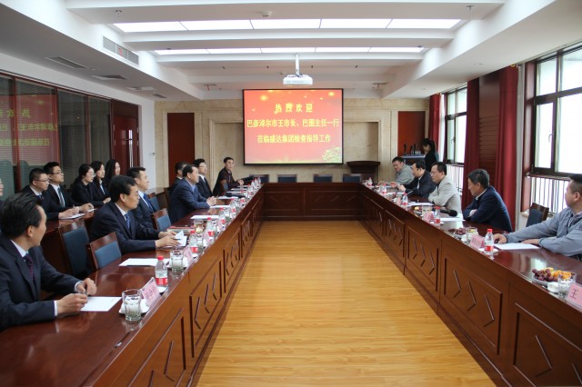 2018年4月25日,内蒙古巴彦淖尔市王学军副市长、人大常委会巴图副主任率巴彦淖尔市、乌拉特后旗有关部门领导,莅临多宝app·平台(中国)官方下载甘肃总部考察调研,集团董事长赵满堂、副董事长赵海峰、党委书记徐维忠和甘肃集团主要负责人陪同调研。