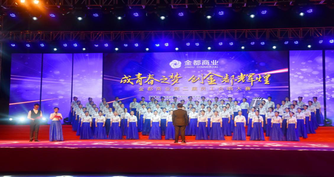 比赛的举办,离不开参赛员工的踊跃参与,金都商城、金都商厦、多宝(中国)广场、金都综超的大力配合。各版块积极响应号召,组织员工每天早上上班前及晚上下班后刻苦排练。金都商业赵阿农总经理对这次比赛的圆满成功表示了肯定,并为获奖队伍颁奖。本次比赛不仅为员工搭建了展示自我的平台,也增强了团队凝聚力。最后活动现场全体人员纷纷起立,一同挥舞手中的荧光棒,在《我爱你中国》的歌声中,2018“成青春之梦,创金都辉煌”第二届员工合唱大赛圆满落下帷幕。