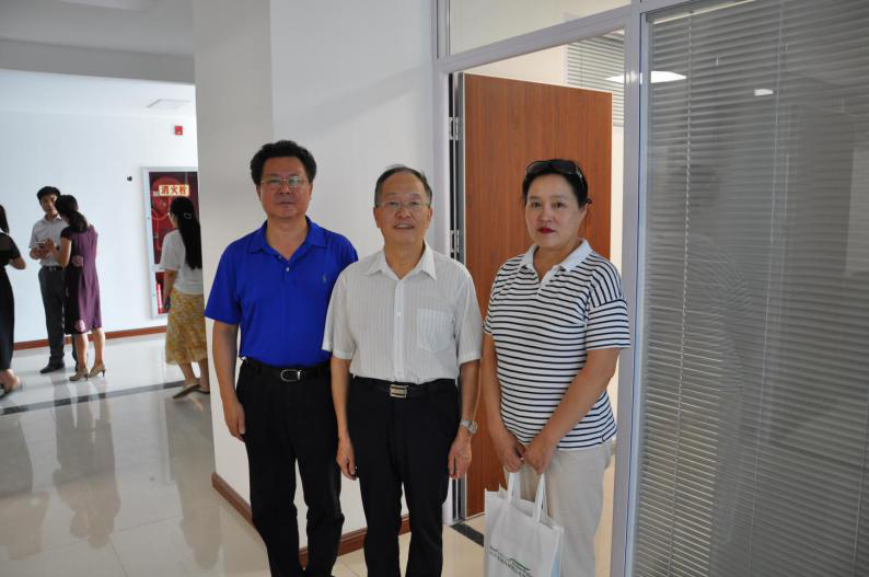 院党委书记刘少明,院长张世明,常务副院长蔺小贤在办公区合影留念