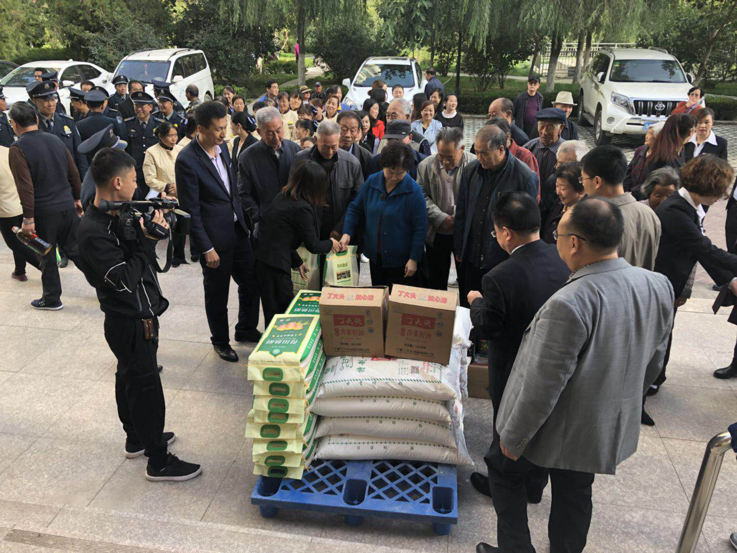 此次活动邀请街道办、社区、市房管局物管所及武威市电视台出席,对小区28户空巢老人发放了米、面、油等物品。