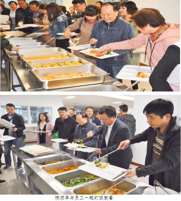 医院党委刘少明书记、张世明院长、蔺小贤副院长在第一时间给予全院员工关怀,并强调要让每位员工在西安汉城妇产医院吃的放心、舒心。仪式结束后,在三位领导的带领下全院员工一起排起长队开始就餐,开餐井然有序,大家挑选着自己喜欢菜品,满意的喜悦流露在脸上;由于菜品繁多,不时听到员工说“饭菜太丰富啦”、“真好吃、真不错”……