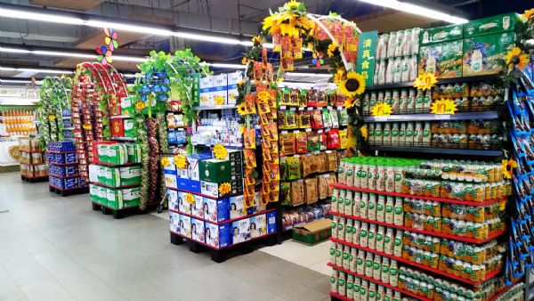 超市主要以经营生鲜、副食、粮油日配、冲饮、休闲食品、洗涤日化以及家杂用品、日用百货。超市现有2万余种商品,严格的质量筛选过程,使我们每天都能保证给顾客提供质优价廉的商品和舒适便捷的服务。