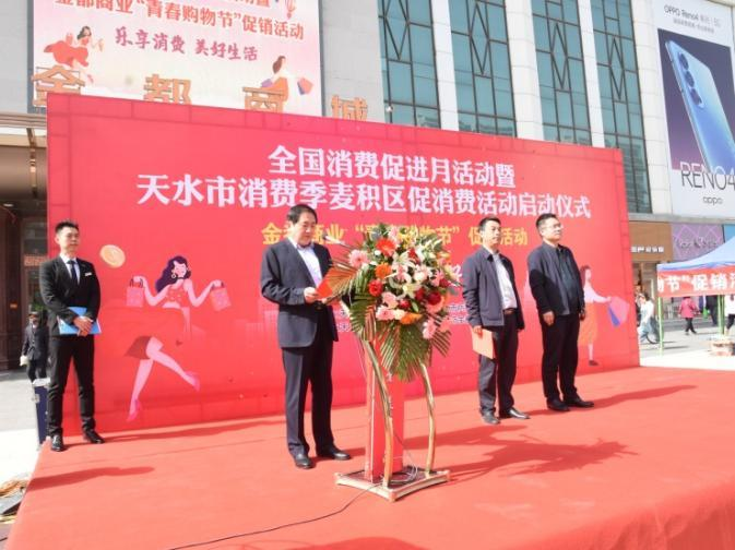 5 月 1 日,金都商业举办全国消费月暨金都商业“青春 购物节”促销活动启动仪式。 天水市商务局二级调研员李晓东、天水市商务局消费促 进科科长郭晓霞、麦积区商务局局长谢崇太等部门领导参加。 启动仪式上,金都商业总经理赵阿农做了精彩致辞,区商务 局局长谢崇太对此次活动内容进行了宣讲,由李晓东调研员 宣布促销活动正式启动。