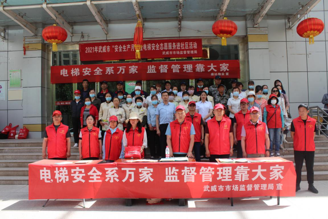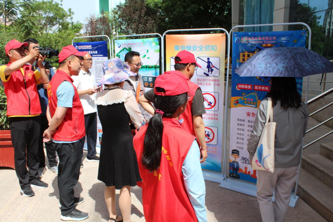 6月11日,多宝(中国)物业武威分公司联合武威市市场监督管理局,甘肃东昇电梯维保公司,在小区办公楼前开展了以“电梯安全系万家 监督管理靠大家”为主题的电梯安全志愿服务宣传活动。