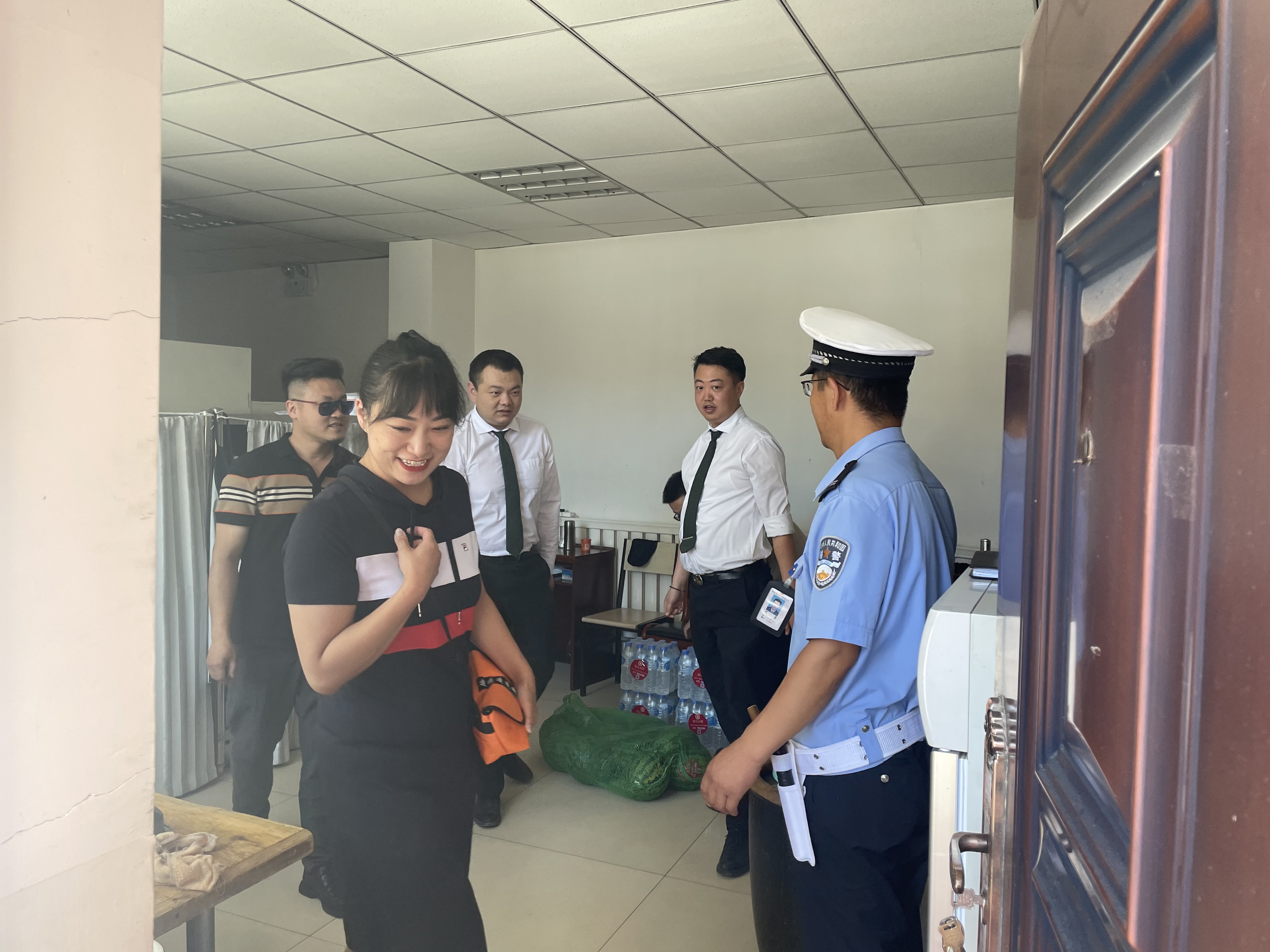 工作人员和人民警察现场合影