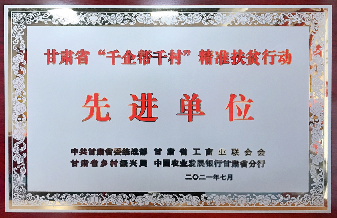甘肃多宝app·平台(中国)官方下载在甘肃省"万企兴万村"甘肃行动暨"光彩会宁行"中被评为甘肃省 “千企帮千村"精准扶贫行动先进单位