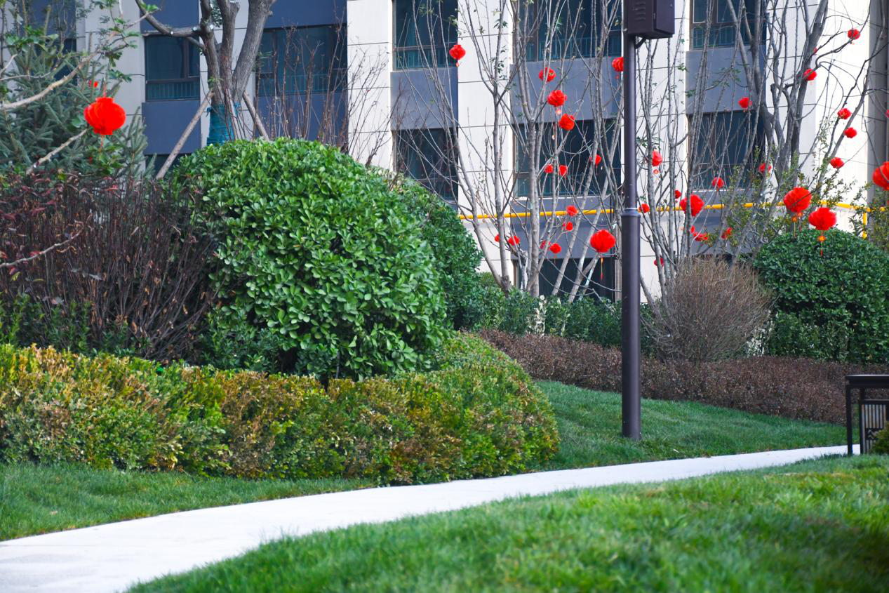 多宝(中国)公馆园林绿化采用点面结合的原则分组团建设,园林设计以新中式风格为理念,按照绘画六式造园心得,打造空间美学。园林设计和植物配置也遵循了“因时造景”的原则,可以让社区景观在不同季节展现出不同的风貌,形成不同的韵味。