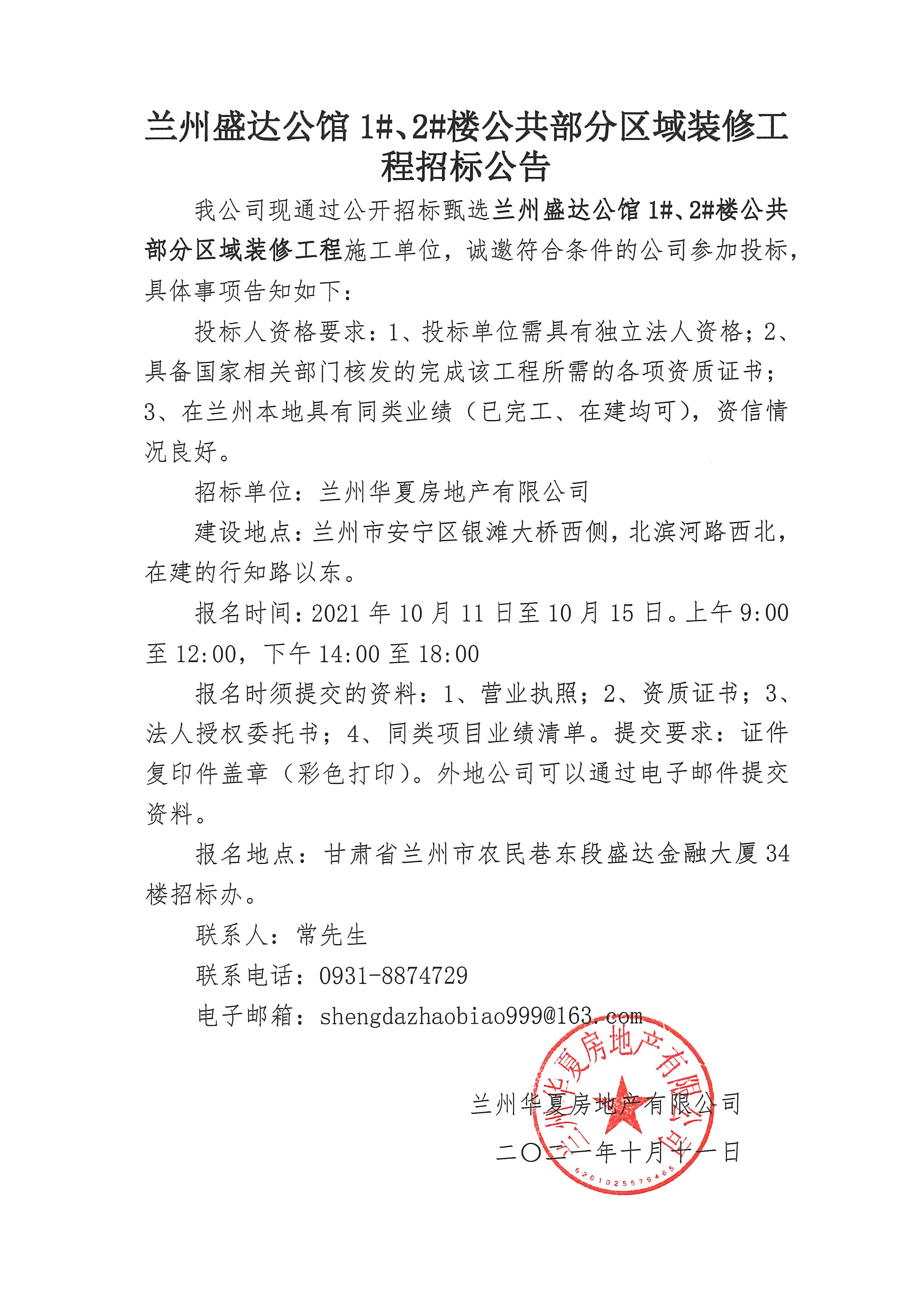 兰州多宝(中国)公馆1#、2#楼公共部分区域装修工程招标广告
